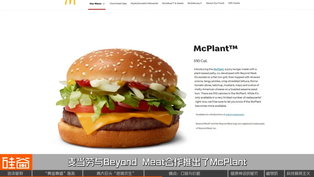网上的资料显示,2021年,麦当劳与Beyond Meat合作,推出了McPlant这款汉堡,2022年在欧美几个国家和地区推出,然而由于销量不佳 ,不少地区将这款汉堡移除了菜单,而在剩下依旧供应的国家的地区中,仅有部分餐厅作为限时供应产品推出。
