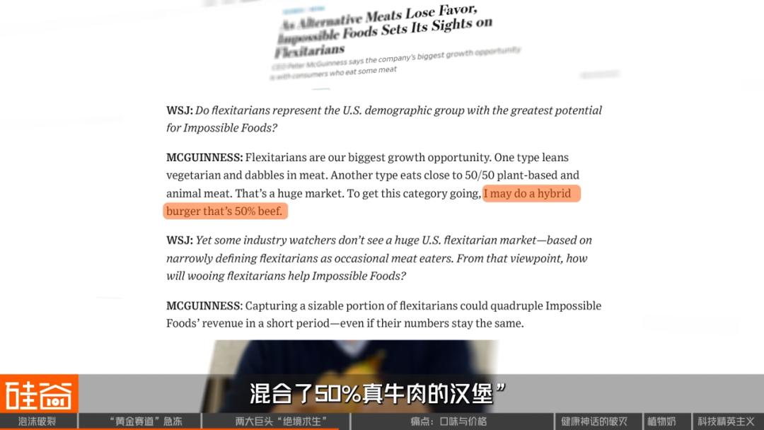 更荒诞的是,它的老对手,另一家人造肉巨头Impossible Foods,它的CEO竟然公开表示,正考虑往他们的“植物汉堡”里,加入真正的动物肉。