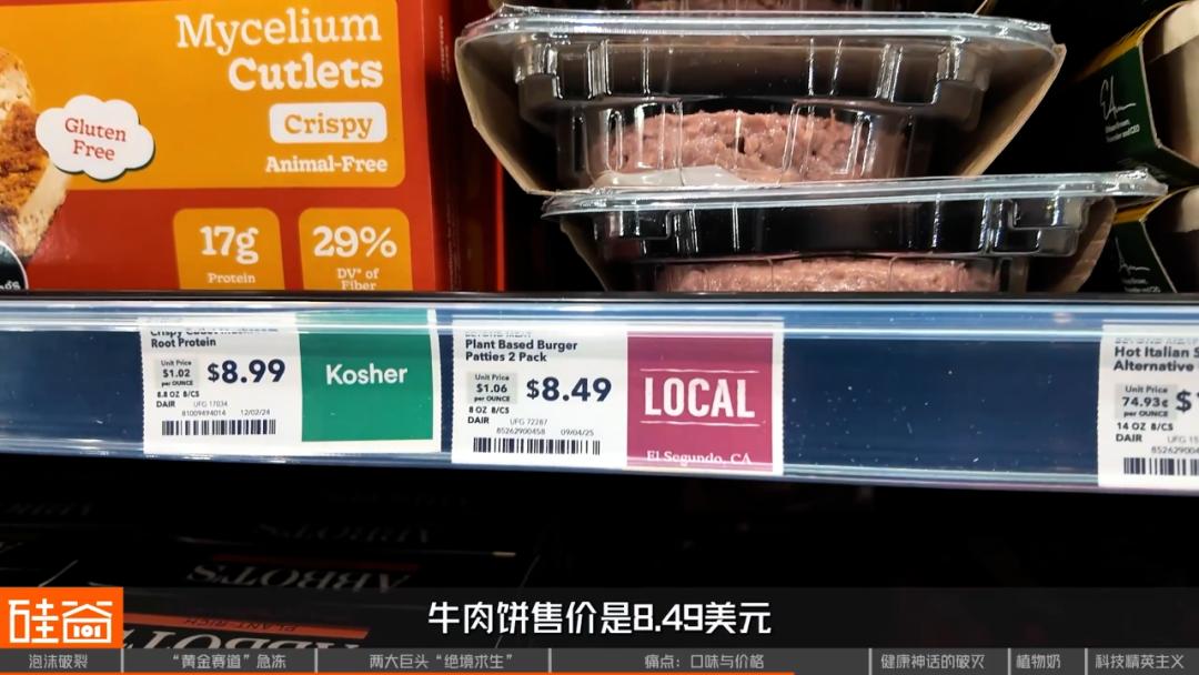 人造肉除了口味不行之外,价格也是劝退的因素之一。根据深度研究人造肉的非营利性机构——美国优质食品协会(GFI)2024年的统计情况,比如说牛肉,真肉是6.69美元1磅(454g,约0.9斤),而植物肉是7.64美元1磅,比真肉还要贵一点。而且牛肉是价差最小的品类,鸡肉、猪肉、火鸡等品类,都贵了更多。