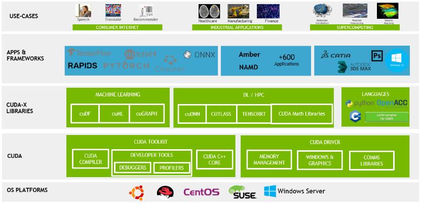 第二,广泛适配,已形成成熟生态。从科研机构用的小模型,到OpenAI训练的GPT-5等超大模型;从医疗影像分析、自动驾驶,到短视频推荐、语音助手,几乎所有AI相关的场景,都有现成的CUDA优化工具和案例。