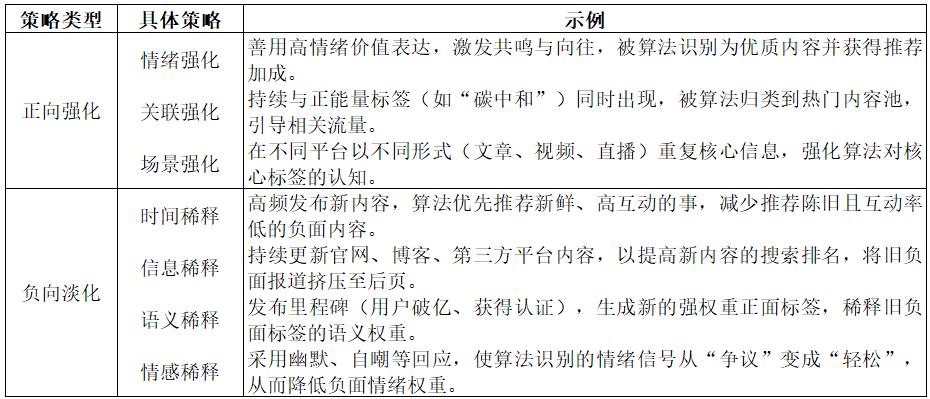 所有策略须以可即时核验的数据或后续行动计划作为可信锚点。针对上述“可解释型”信号,创业者可以通过“降噪—叙事”闭环为后续实质行动赢得时间窗口。具体策略有两大类:正向强化——选择易扩散的情感触发点,同步里程碑数据放大正面声量;负向淡化——稀释负面信息的情感冲击力。