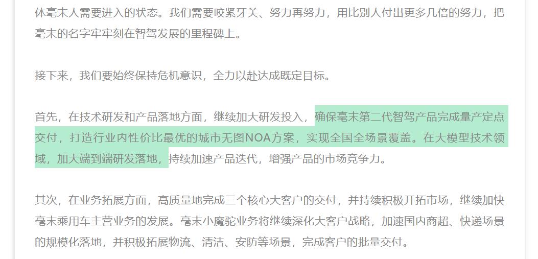 2024年也是毫末智行全方位掉队的一年,这种掉队不仅体现在技术先进性上被其他企业全面反超,还体现在系统装车数量和应用范围上的全面落后。