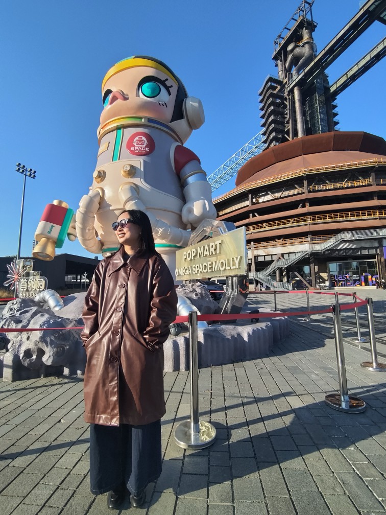 当然,它不仅好看,还好拍。左边这张是我们在首钢园网红打卡机位,用AI眼镜拍的照片,可以看到1200万像素的广角摄像头能够把人物、建筑和装置,都按合适的构图方式拍进画面里。