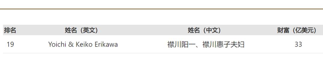 而最新发布的2025福布斯日本富豪榜显示,襟川惠子与丈夫襟川阳一以33亿美元(约合人民币235亿元)的财富位列第19位。若仅以其家族财富的一半估算,惠子的个人身价高达约16.5亿美元(约合人民币118亿元)。这同样印证了她身为光荣特库摩联合创始人、「女股神」的巨大成功和行业地位。