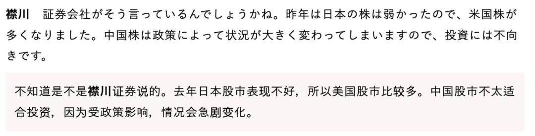 在地域配置上,惠子也灵活应变。2021年前后日本股市低迷,她果断增配美股,收益显著。而有意思的是,即使是惠子,也不敢轻易涉足大A。在一次采访中,她提到了A股市场政策变化大,不太适合投资。