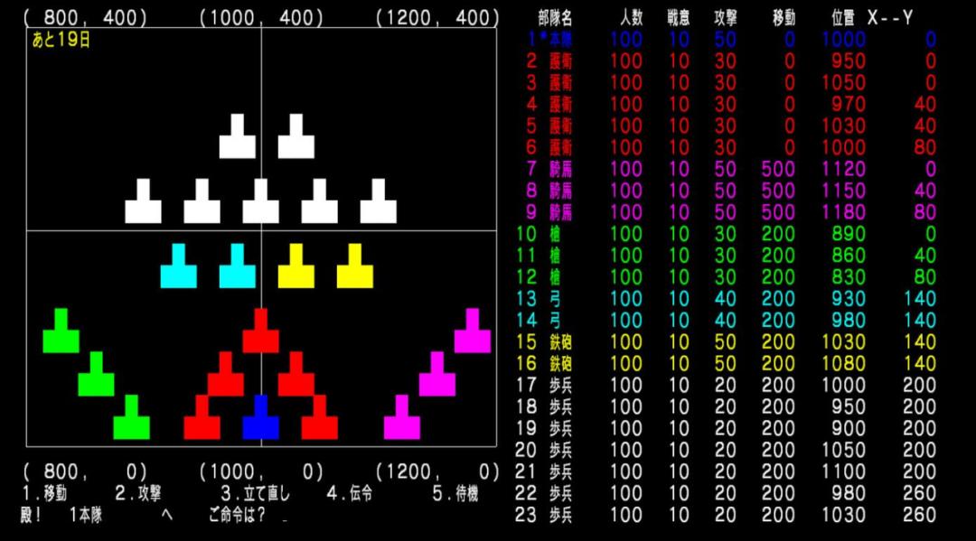 于是在此之后,夫妻俩白天经营染料业务,晚上襟川阳一自学BASIC和汇编等编程语言。仅一年后,光荣的处女作《川中岛合战》开发完成。