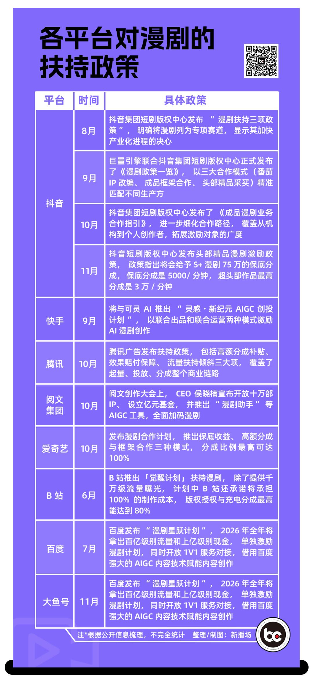 巨头们跑步进场,既有抖音、快手这样的短视频平台,也有B站、爱奇艺等中长视频平台,还有腾讯、百度、阿里等互联网大厂。一时之间,漫剧赛场上热闹非凡。