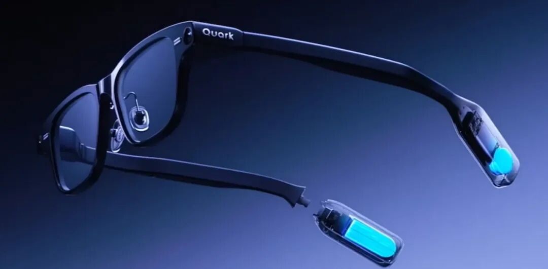 如果我没有记错的话,夸克是将右侧镜腿末端做了可拆卸设计,拆卸部分是一块40mAh的电池。