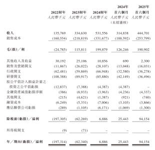 在经历2022年、2023年的亏损后,拓璞数控于2024年实现盈利689万元,毛利也从2022年的亏损2479万元跃升至2024年的近2亿元,完成了从亏损到盈利的转变。2025财年上半年总营收超4亿元,盈利增至9415万元。