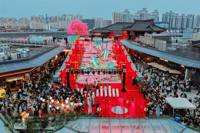 2025年国庆假期,西安大悦城一方面以大雁塔为背景,打造空中国风大秀、诗魂舞台剧等高审美内容;另一方面设置“千相谜局”互动游戏、非遗鱼灯舞、抛绣球等参与式环节,将游客从“打卡者”转化为“剧中人”。同期落地的“长安祈愿台”与“梦长安・朱红回廊”两大场景,更将短期活动沉淀为长期情感地标,既提供了高质感的社交素材,也强化了消费场景的记忆点。假日期间,项目客流超82万人,销售额突破7200万元,成效显著。