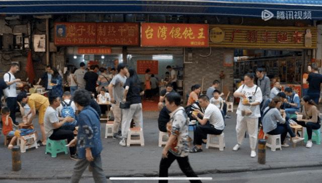 手心捧着牛肉汤粉,胳肢窝夹着面窝,边走边吃的人占了大多数。更有进阶版的狠人,只用一根拇指就能翘动热干面、豆皮和汤粉的宇宙,在自行车把上把碱面吸溜得风生水起,顺带在路上划出一条带着芝麻香味的优雅弧线。