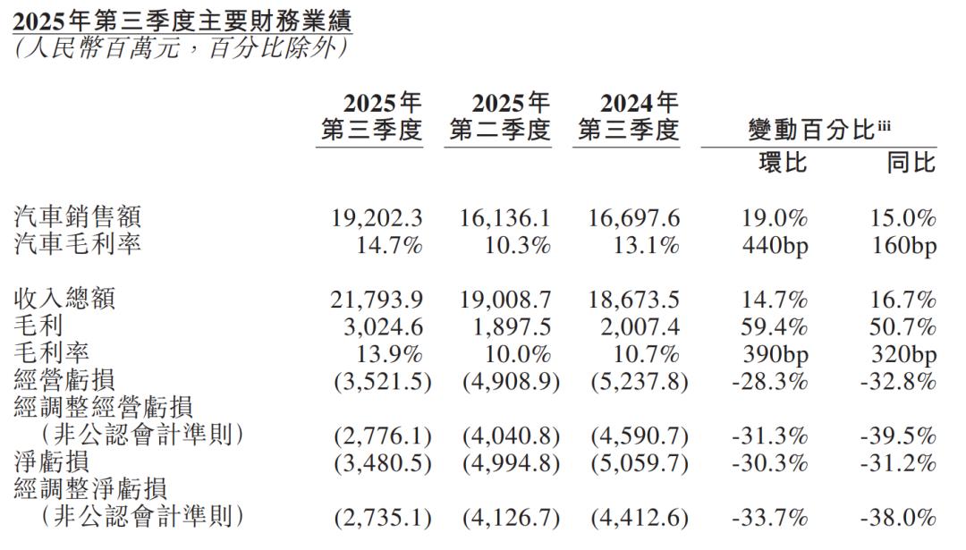 尽管亏损额在收窄——2025年第三季度净亏损34.8亿元,同比减少31.2%;非公认会计准则下的调整后净亏损为27.35亿元,同比收窄38.0%——但巨额亏损本身的存在,无情地揭示了一个现实:在李斌大力推行的“效率革命”之下,公司庞大的固定成本与费用结构,依然是一头吞噬利润的“巨兽”。