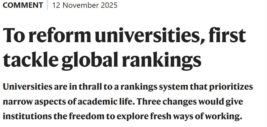 Nature最近的一篇评论揭开了一个难以启齿的真相——大学早已被「全球排名」绑架!数字取代了理想,排位左右了决定。从课堂到政策,一切都在为名次让路。当教育被算法定义,大学,还能保留自己的灵魂吗?