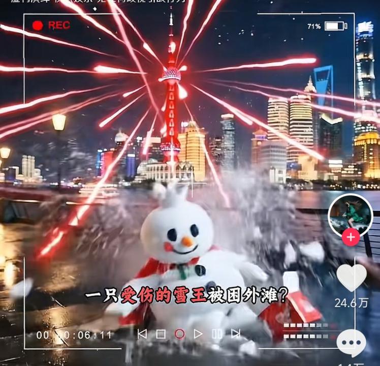除了官方账号下场营业外,以极致性价比著称的蜜雪冰城,还在人人拍摄短视频的今天,成了一些网友整活儿的道具。