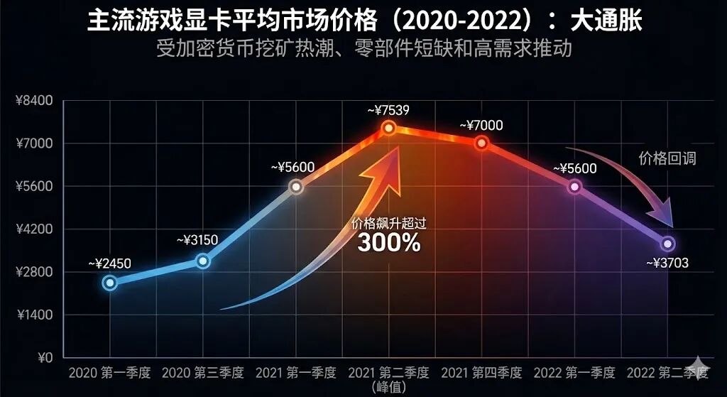 2020年起,比特币、以太坊等虚拟货币价格飙升,引发全球挖矿热潮。挖矿需要大量GPU进行并行计算,显卡成为"印钞机",矿主们疯狂扫货。