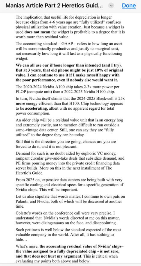 Burry的核心反驳点在于,他认为英伟达的备忘录曲解了他的批评,攻击了一些他从未提出过的论点。