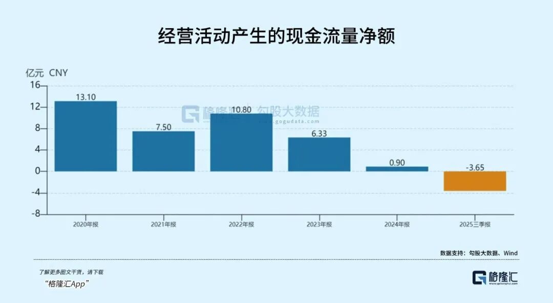 近几年来,蓝色光标经营现金流日益缩减,2025年至今,蓝色光标现金流甚至呈现净流出状态,前三季度经营现金流净额为-3.65亿元。