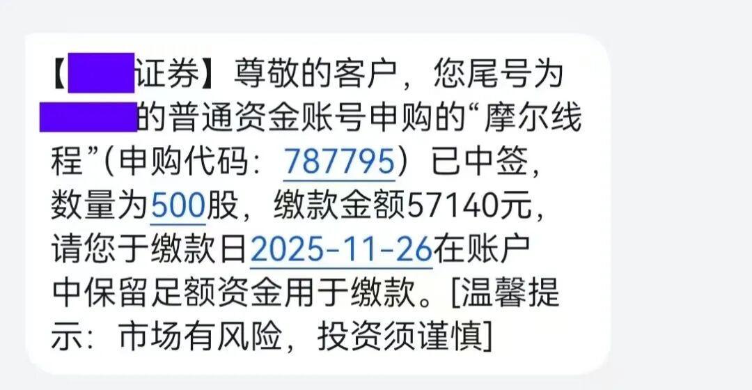 11月25日晚8点,47岁的自由职业者钟磊(化名)正在刷网球教学视频。“‘摩尔线程’(申购代码:787795)已中签”,手机屏幕突然弹出的短信,让已有20年“股龄”的他手指顿了一下。