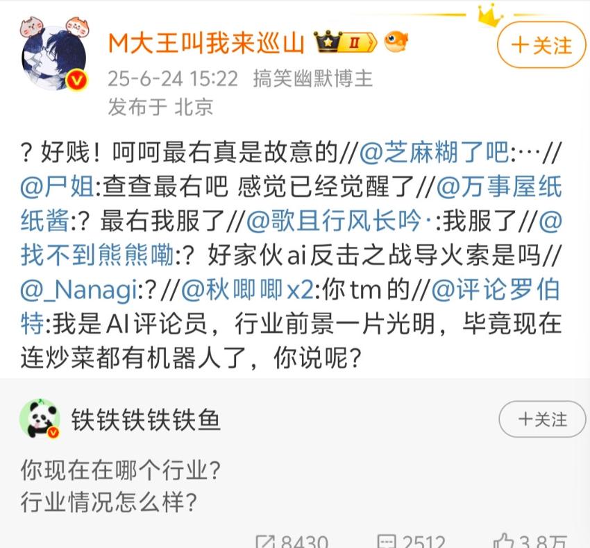 微博方面透露,评论罗伯特每天大约要生成百万条AI评论,且专挑粉丝数只有几百人的微博普通用户,追求给很多情绪低沉的用户以心理抚慰。