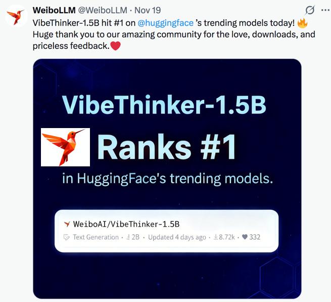 图 | VibeThinker大模型的推出,在海外也引发广泛关注