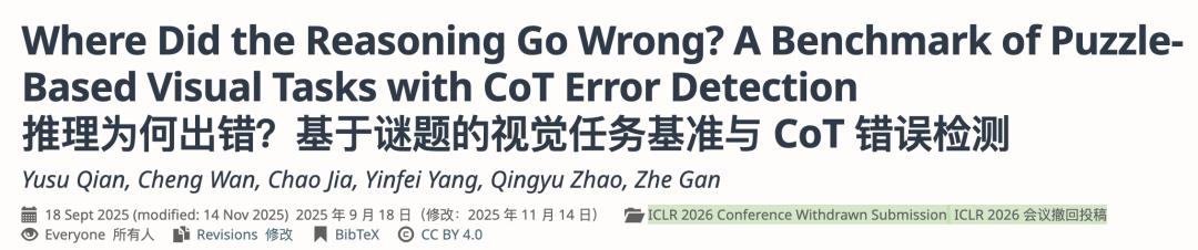 这个荒诞故事涉及的论文名为《Where Did the Reasoning Go Wrong? A Benchmark of Puzzle-Based Visual Tasks with CoT Error Detection》。