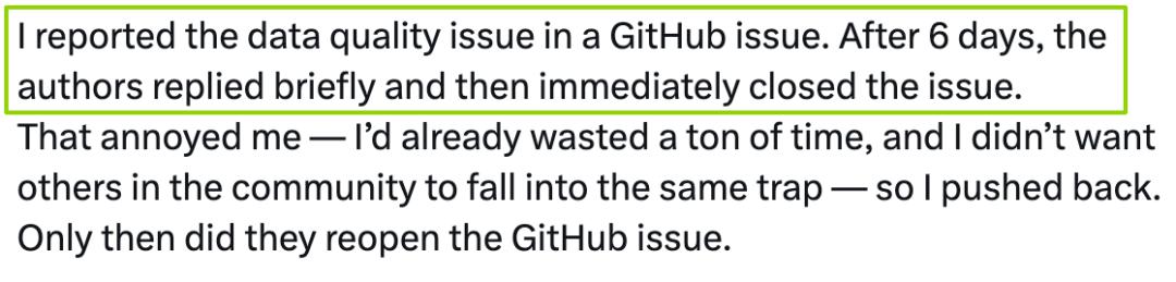 自己去反馈问题,对方简单回了两句就把issue关了;直到自己留下公开评论,对方才撤稿下架代码了。