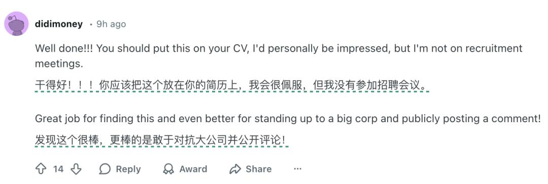在这条评论最后,Lei Yang留了句话
