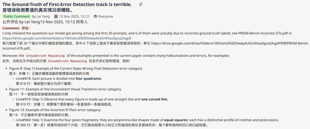 ICLR review公布后,Lei Yang看了看该论文的5条reviews,居然没有任何一个审稿人发现GT质量问题,也没人发现论文中的例子存在幻觉和错误。