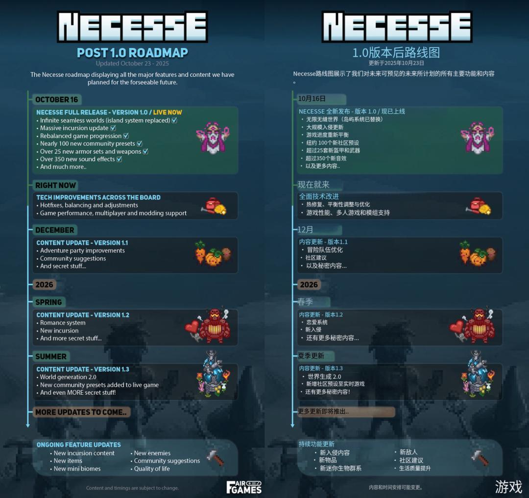 当然,这并非《奈斯启示录》不想做得更完善,游戏正式版发售以后,制作组已经规划好了接下来的更新路线,核心内容其实就是在扩充中后期的内容和玩法(包括好感度系统),削弱重复感。