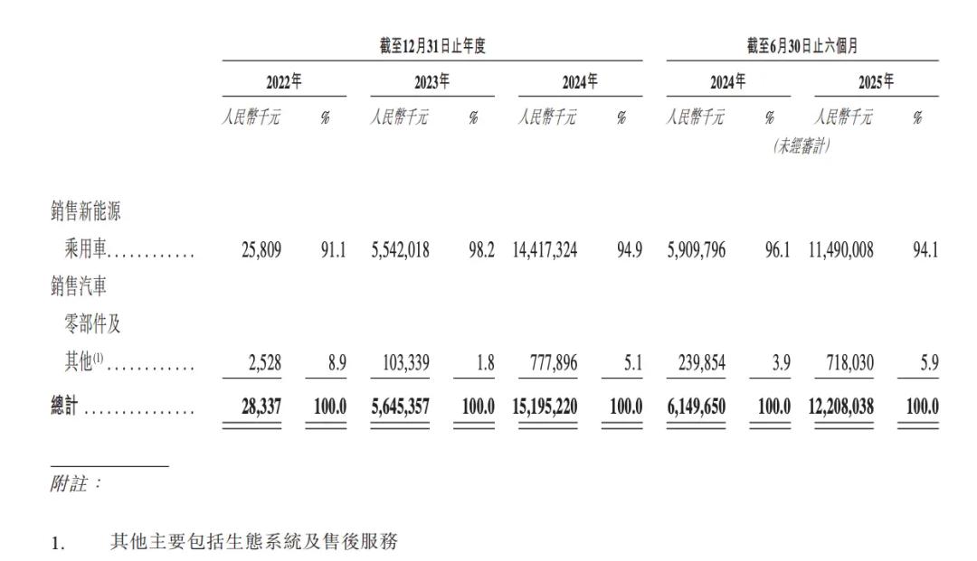 一边是业务高速扩张——营收在三年间从2834万元飙升至近152亿元;销量从三位数起步,到2025年前十个月实现了连续八个月破万。这背后是“三年四车”的产品布局、20万至70万元的价格矩阵和“纯电+增程”双线布局。