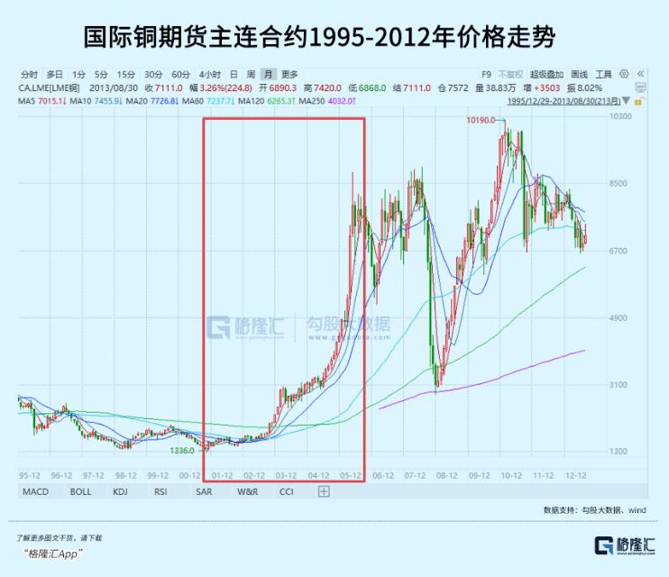 2001年互联网泡沫危机后,美联储累计降息5.25个百分点,低利率环境持续至2003年,推动大宗商品指数从底部上涨超150%,同时叠加中国“入市”拉动中国制造业井喷和大规模基建,国际铜价从1400美元/吨持续飙涨至8700美元/吨;2008年次贷危机后,零利率政策叠加量化宽松,铜价从3000美元/吨飙升至1万美元/吨。