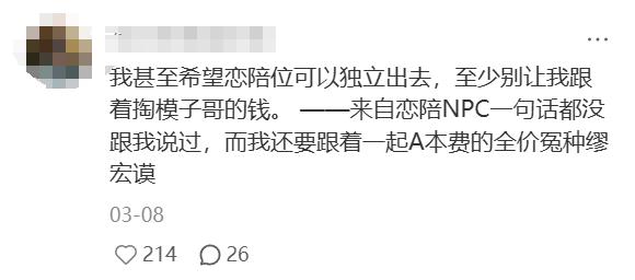 早期的恋陪本还讲究 “剧情平衡”,现在为了突出恋陪位,把边位剧情砍得稀碎。边位玩家沦为背景板,全程玩手机,花 398 当了几小时观众,纯属冤大头。