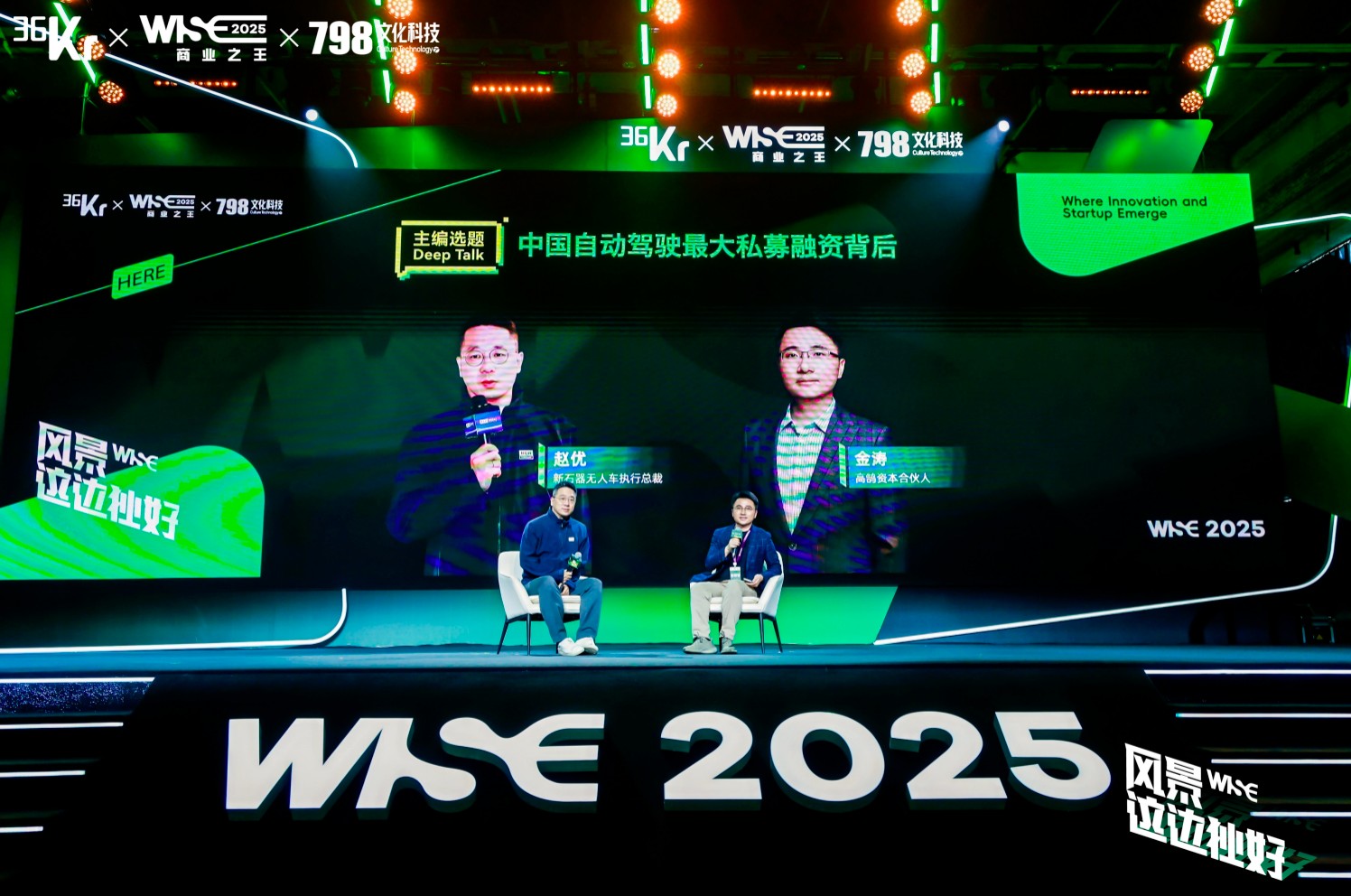 今年36氪WISE 商业之王大会,深度聚焦AI、出海等核心赛道,对2025年商业与科技的融合展开全面洞察。在首日上午的巅峰对话中,高鹄资本合伙人金涛与新石器无人车执行总裁赵优,围绕“中国自动驾驶最大私募融资背后”展开了深入交流。