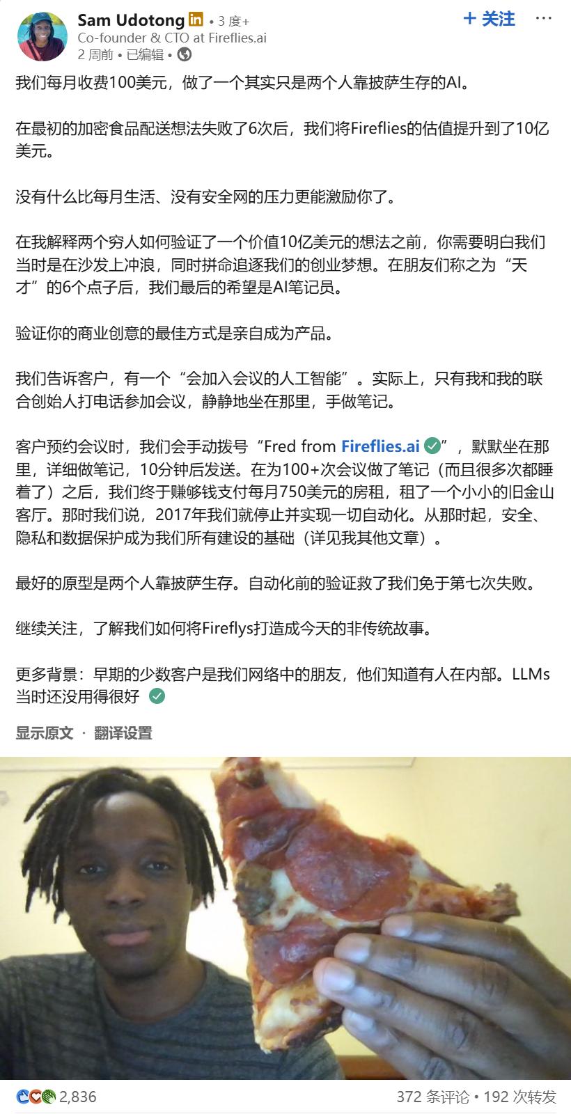 两周前,市值超过 10 亿美金的著名 AI 独角兽 Fireflies.ai 的联合创始人兼 CTO Sam Udotong 在领英上抛出了一枚震撼弹:他们起初引以为傲的产品,其实是人假扮的。