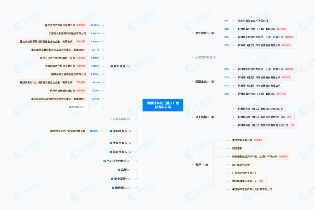 长安汽车作为最大股东,招股书显示直接持股约40.99%,同时通过旗下创新平台常安创新等间接持股,合计控制阿维塔已发行股本41.57%。