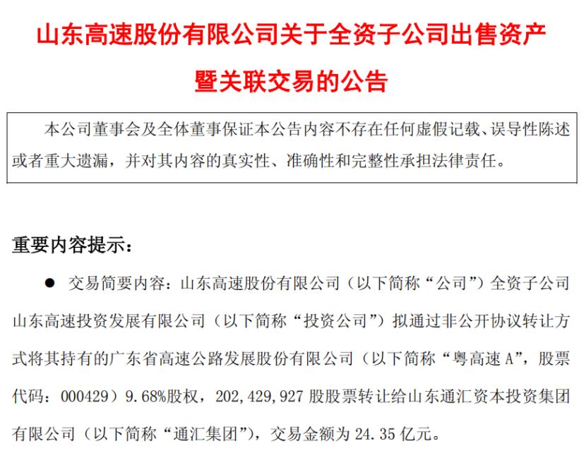 出售粤高速A净赚8亿,山东高速在下一盘怎样的棋?