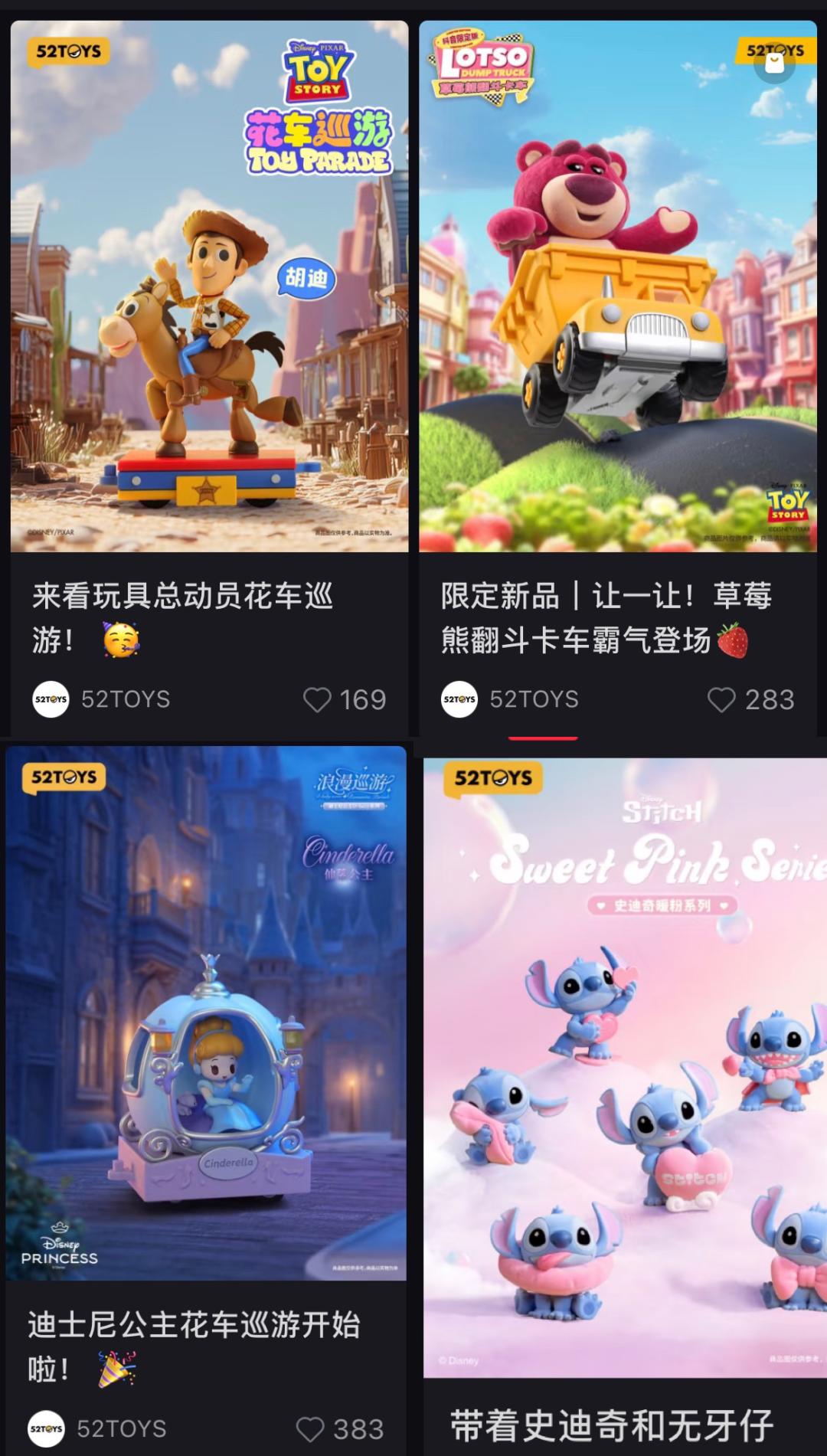 同时,早在2018年,52TOYS 就和迪士尼开启了授权合作,从迪士尼公主、冰雪奇缘,到复仇者联盟、草莓熊、史迪奇,一款款产品做下来,不仅摸清了迪士尼 IP 的受众喜好,更建立起了稳固的信任。