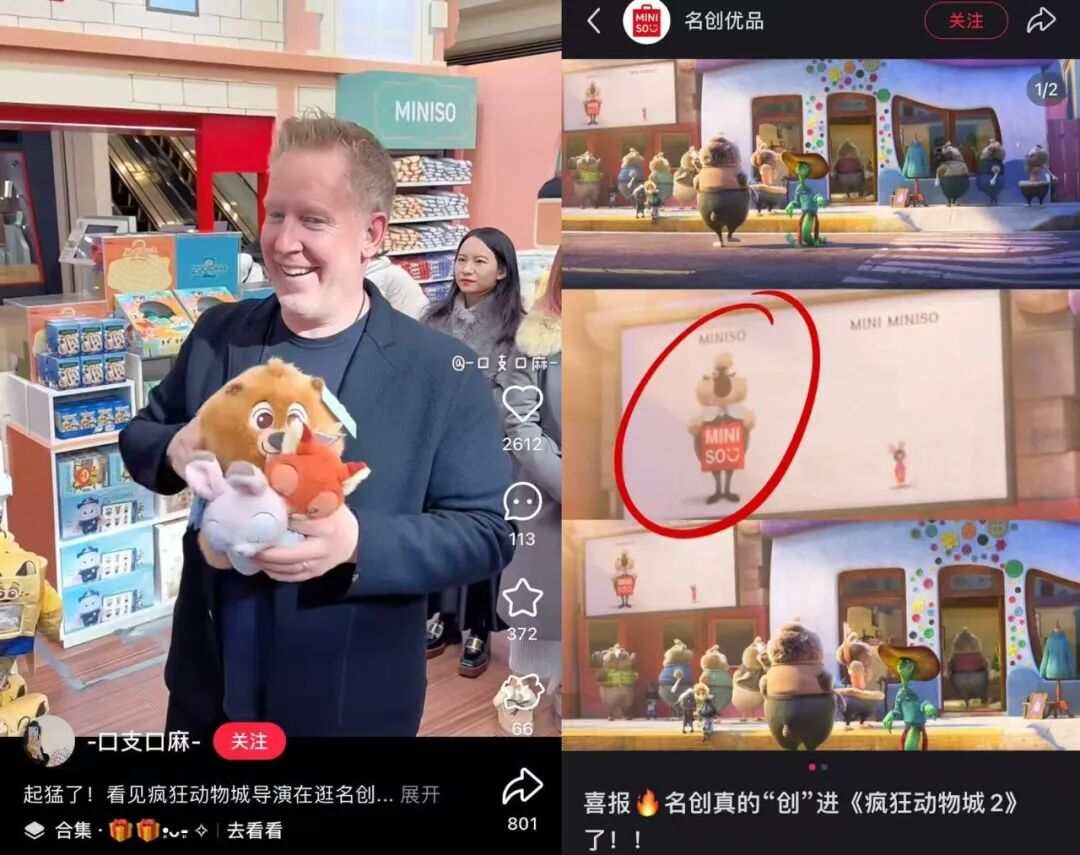 潮玩周边是迪士尼的传统强项,但这次也兼顾了更大众的消费人群和核心粉丝。《疯狂动物城》联名了名创优品、52TOYS等一批头部潮玩品牌。名创优品不仅出了手办、文具,以及各种饰品挂件等,还成了首个植入电影的中国品牌,电影里的“MINISO”门店广告牌成了粉丝必找的彩蛋。