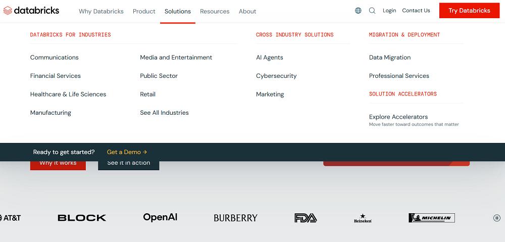 Databricks目前提供的解决方案(图源:Databricks官网)