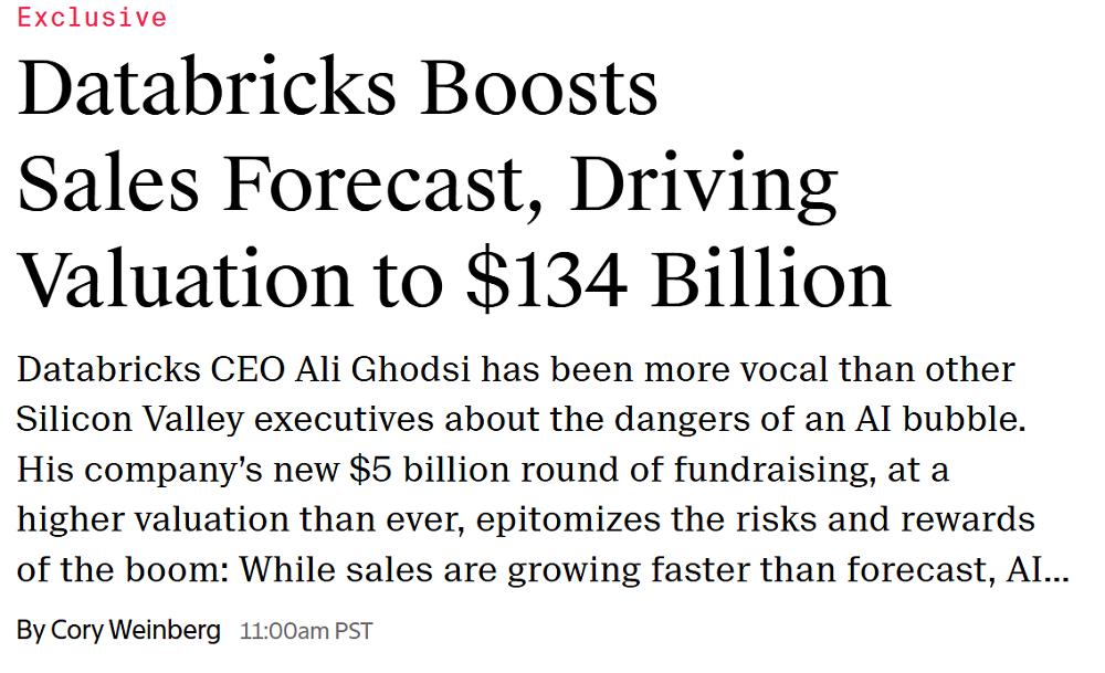 Databricks去年12月完成的100亿美元融资,是有史以来私营公司规模最大的融资之一。而The Information爆料的最新一轮50亿美元融资,以其前所未有的高估值,诠释了这场AI热潮的风险与回报:尽管销售额增长超出预期,但AI开发成本正在挤压毛利率。