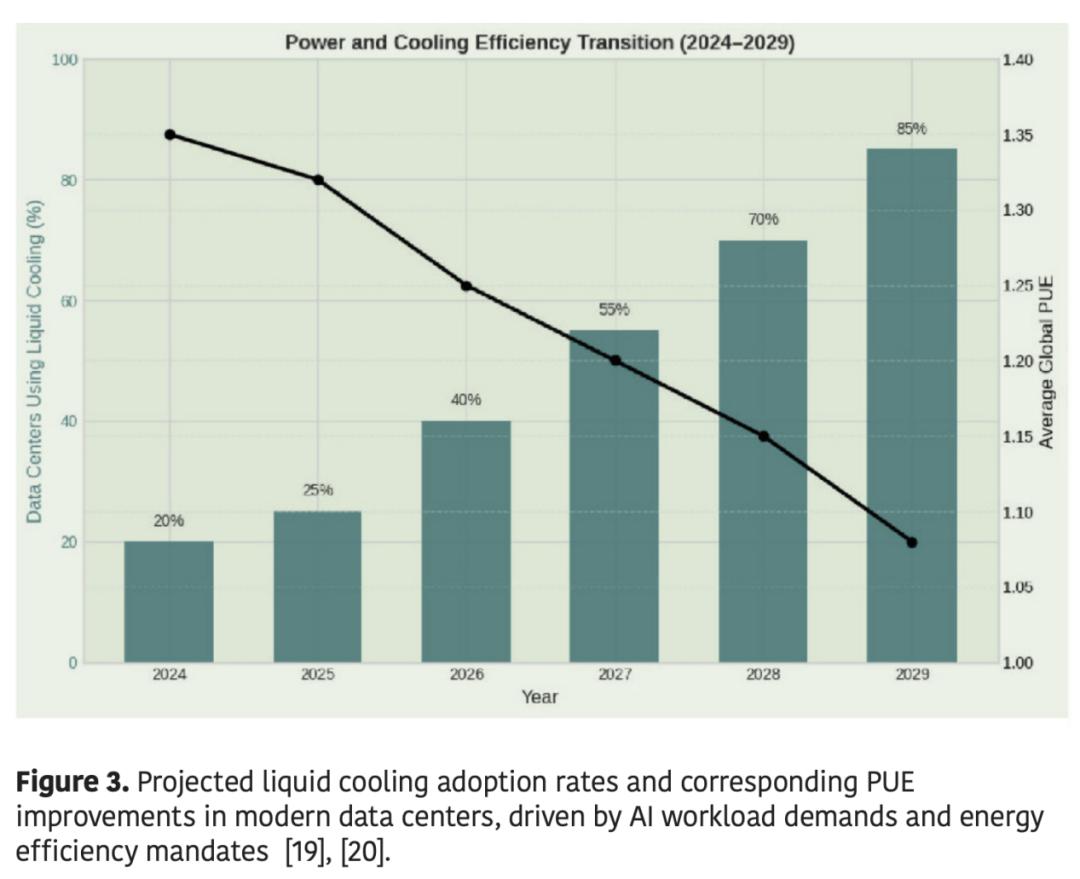 散热管理变得同样至关重要。随着机架功率超过 100 kW,风冷接近物理极限,加速了液冷系统的普及。到 2026 年底,超过 40% 的新型 GPU 集群将采用芯片级直接冷却或浸没式冷却,而 2024 年这一比例为 20%。监管机构,尤其是在欧盟,现在要求公开能源和冷却信息,从而推动了热回收系统和可再生能源的普及。尽管人工智能数据中心的耗电量可能超过某些国家,但它们与碳中和能源和先进冷却技术的融合最终可能会加速向更清洁基础设施的转型。“电力危机”因此演变为创新的催化剂,它界定了人工智能可扩展性的极限,同时也促成了半导体、能源供应商和环境政策之间新的产业联盟(图 3)。