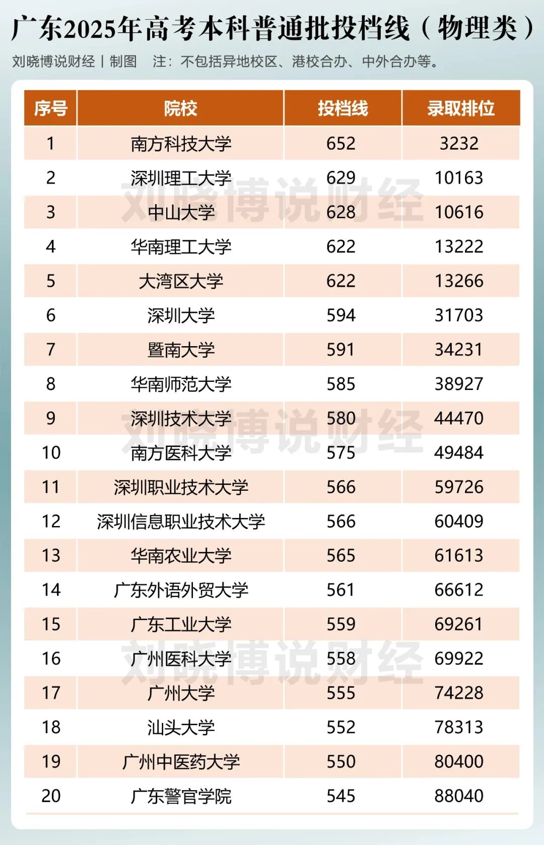 也就是说,广东录取分数线最高的两所大学均在深圳,广州的中山大学位居第三。 更关键的是,南方科技大学也超越了西安交通大学、华中科技大学、武汉大学这些老牌的985高校。
