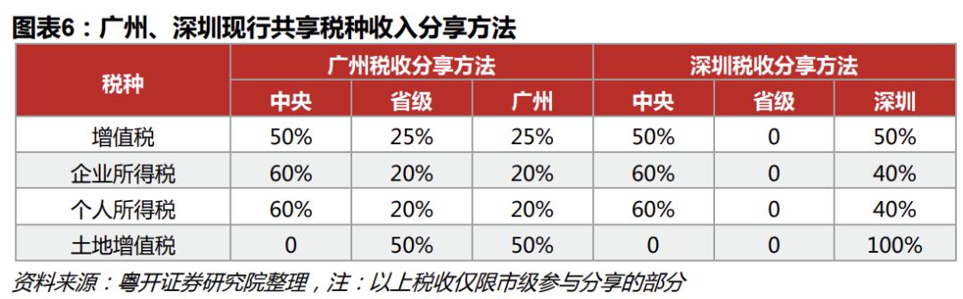 根据粤开证券研究院的分析,2019年广深贡献的中央、省、市可用财力比重分配为 57:10:33、57:1:42。