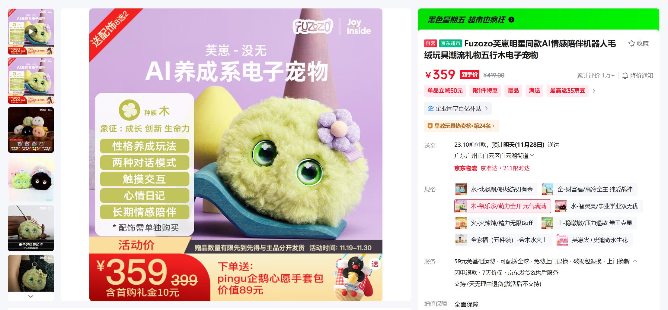 11月20日,京东京造宣布上线搭载JoyInside系统的AI毛绒玩具系列,目标群体锁定儿童与家庭市场,围绕想象力游戏、故事陪伴、知识启蒙与情绪感知展开,构建“成长型陪伴玩具”场景,试图重新定义孩子与玩具、家庭与陪伴之间的关系结构。