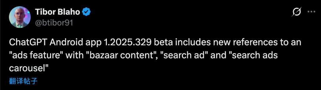 开发者Tibor首次曝光了这个重磅消息。他在ChatGPT安卓应用1.2025.329测试版的代码中,发现了多个与广告相关的引用。