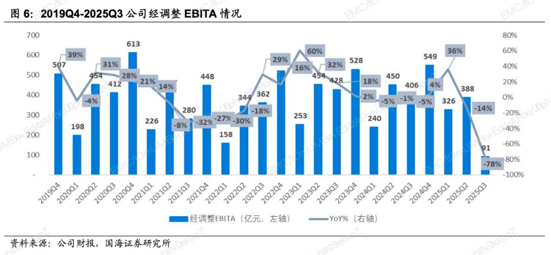 2025年Q3,阿里经营利润仅剩54亿元,同比下降 85%;净利润则为206亿元,同比下降 53%,环比跌幅也高达51%。