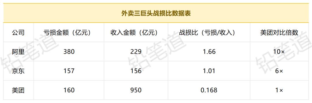 放到这次外卖大战里,“亏损”好比是你投入的兵力,“收入”则是你要拿下的城池。花更少的亏损,撬动更多的收入,就意味着战斗效率更高,战损比更低。
