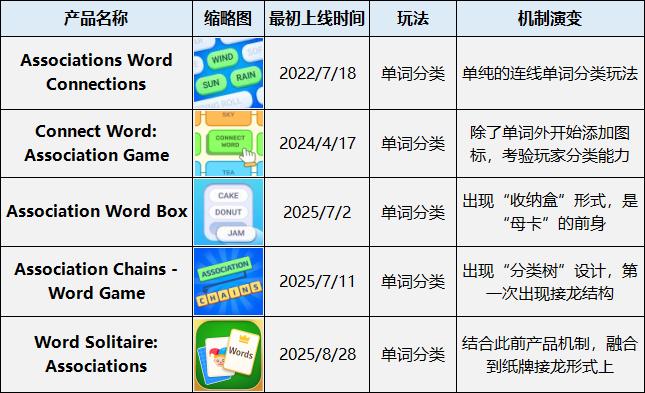 「Association Word Box」(上图) 和「Association Chains」(下图) 已经开始出现母卡和接龙等机制 | 图片来源:App Store