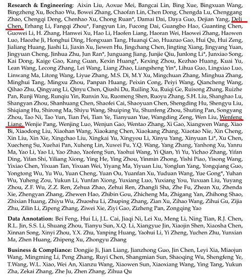 值得一提的是,在技术报告的作者名单里,我们能看到不少熟悉的名字,比如DeepSeek创始人兼CEO梁文锋、前段时间代表DeepSeek在乌镇世界互联网大会上发声的研究员陈德里等。