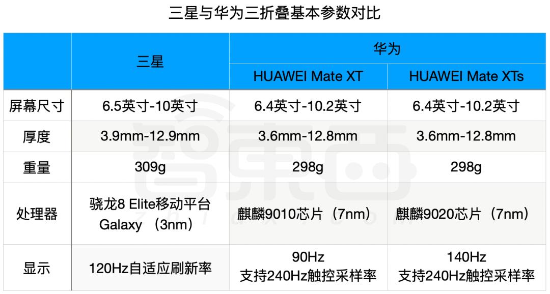 ▲三星与两款华为三折叠手机基本参数对比
